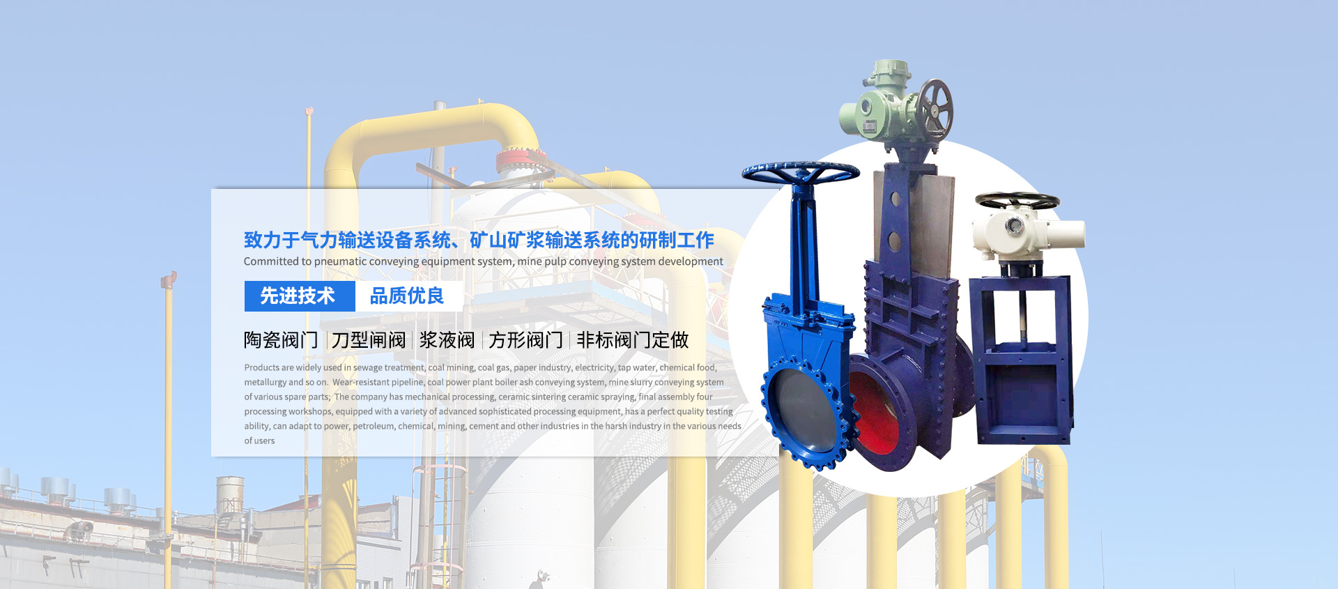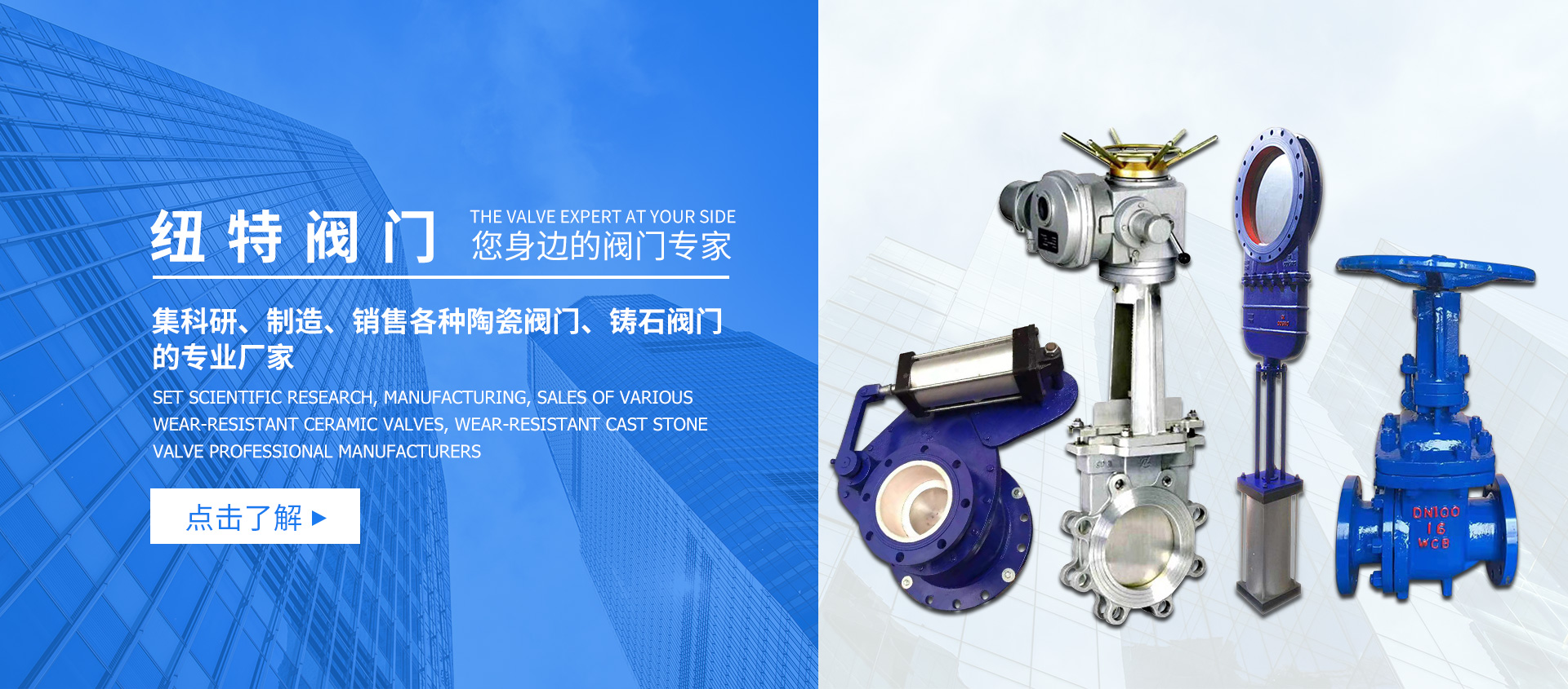 浙江紐特閥門科技有限公司是一家集科研、制造、銷售各種陶瓷閥門、鑄石閥門的專業廠家。公司一直以來致力于氣力輸送設備系統、礦山礦漿輸送系統的研制工作,并擁有多項先進技術的廠家。專業生產各種陶瓷閥門、刀型閘閥、漿液閥、方形閥門、非標閥門定做系列,產品廣泛應用于污水處理、采煤業、煤氣、造紙業、電力、自來水、化工食品、冶金等。管道、火電廠鍋爐灰輸送系統、礦山礦漿輸送系統的各種備品備件;公司擁有機械加工、陶瓷燒結陶瓷噴涂、總裝四大加工車間,裝備了多種先進精良的加工設備,擁有完善的質量檢測能力,能適應電力、石油、化工、采礦、水泥等行業在惡劣工礦中用戶的各種需求┈┈